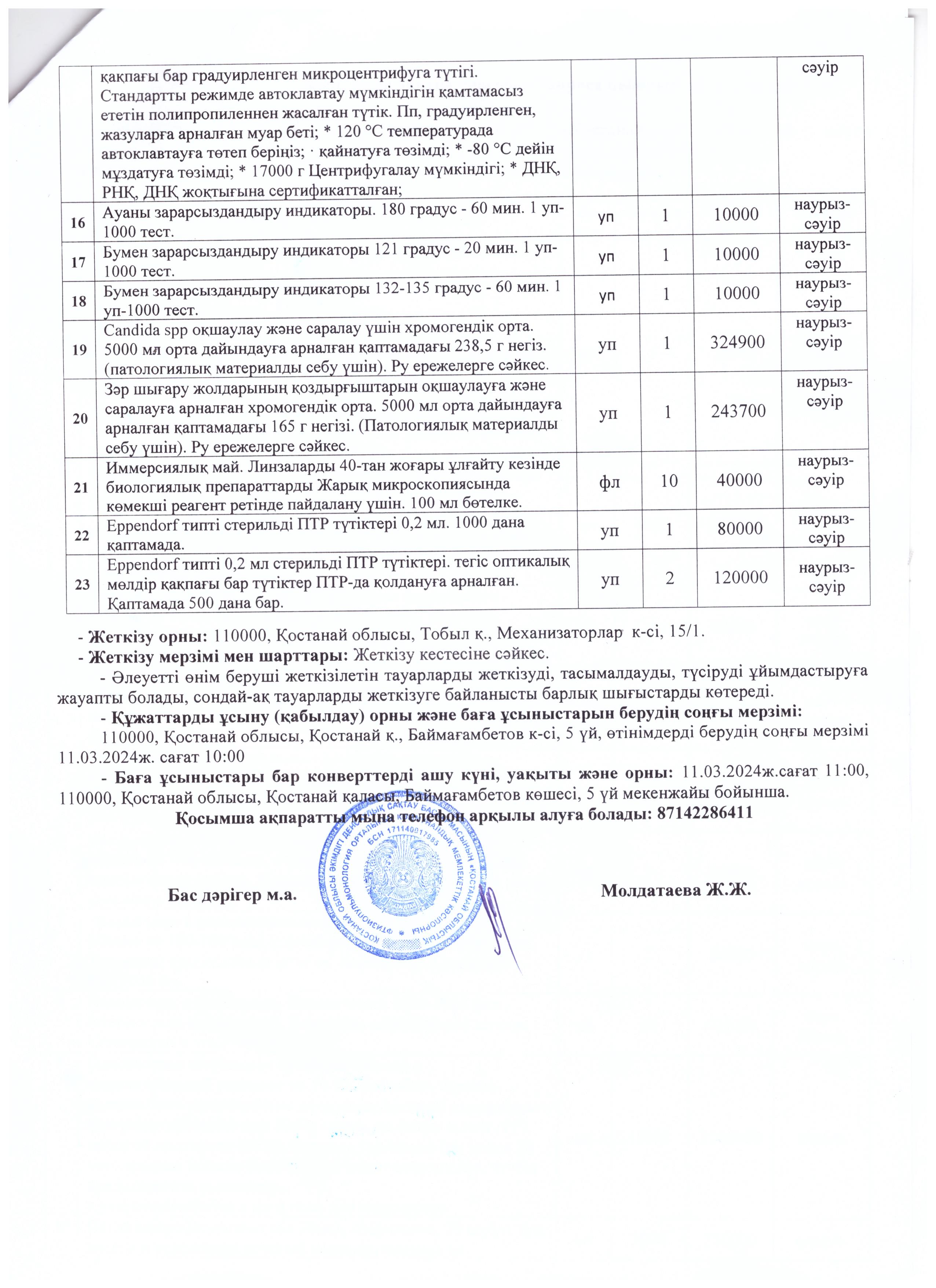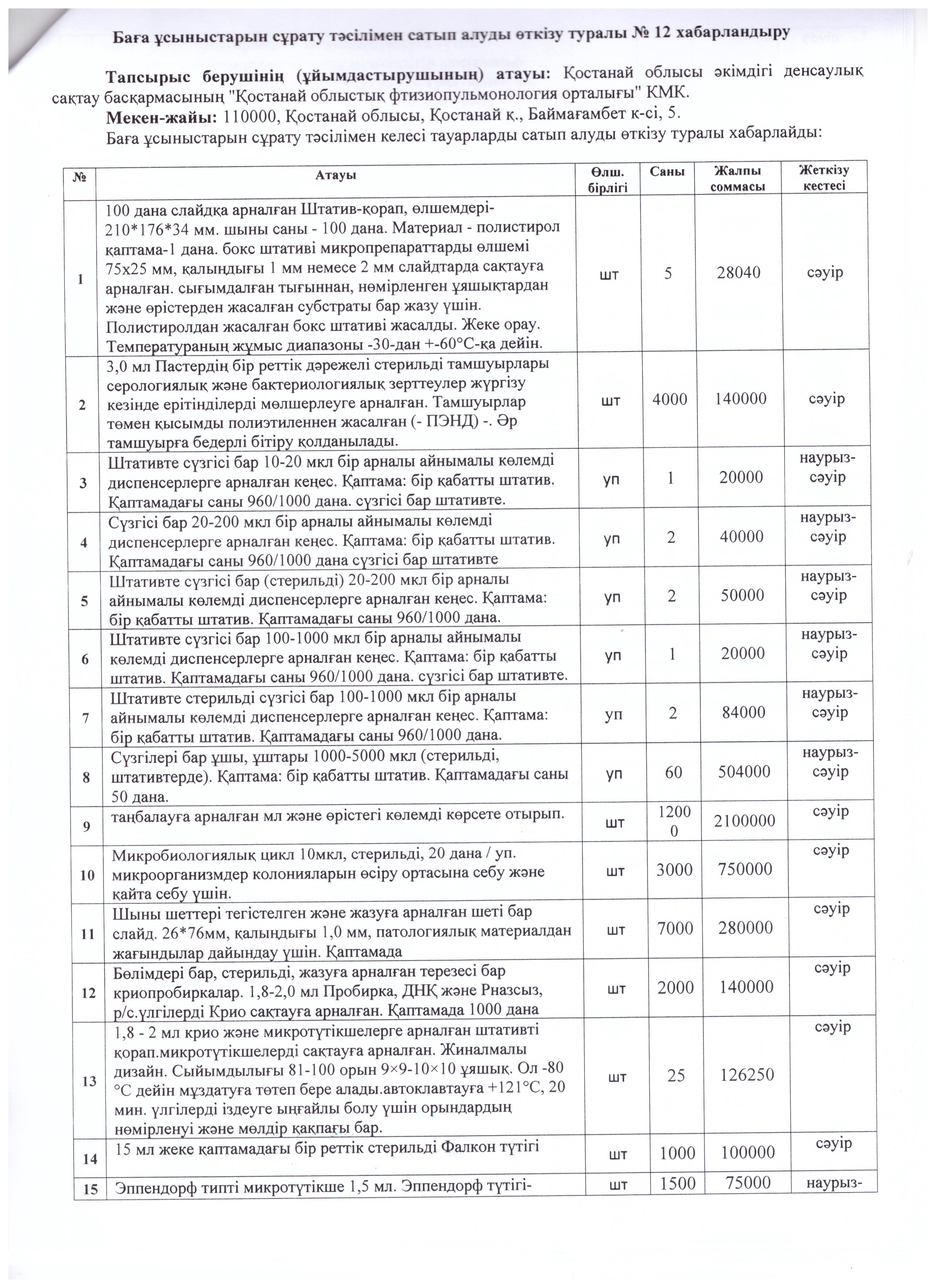 Баға ұсыныстарын сұрату тәсілімен сатып алуды өткізу туралы Хабарландыру №12