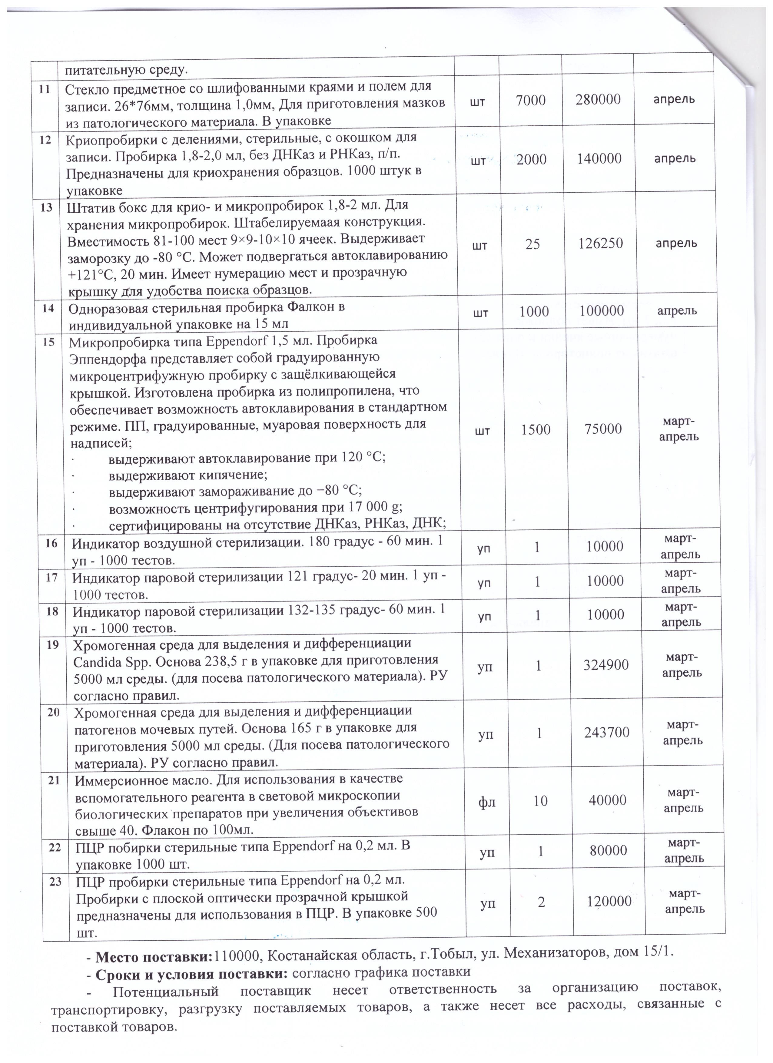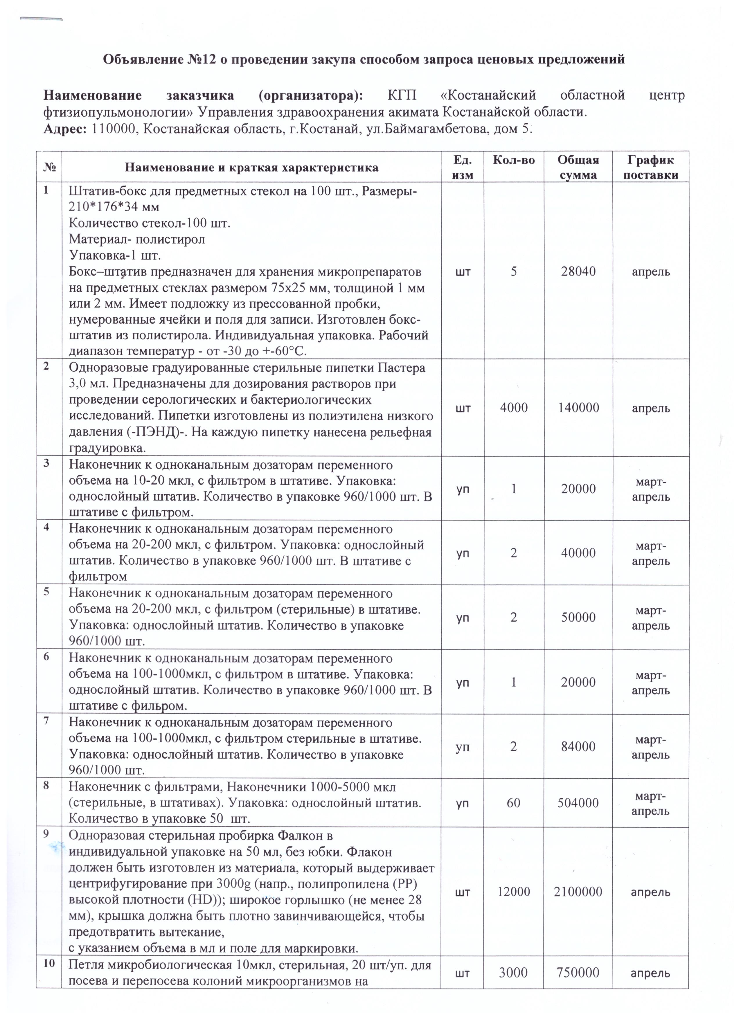 Объявление №12 о проведении закупа способом запроса ценовых предложений