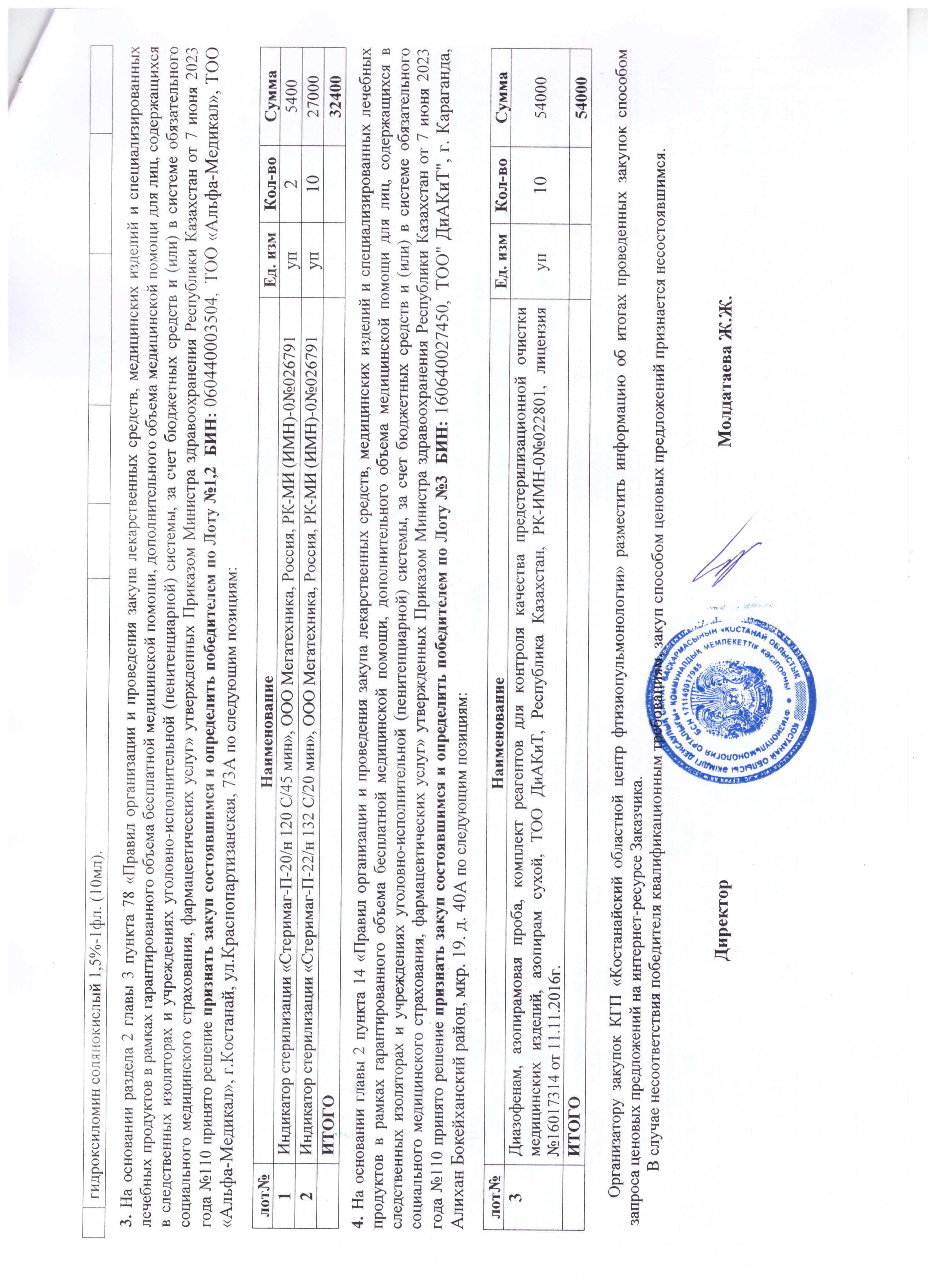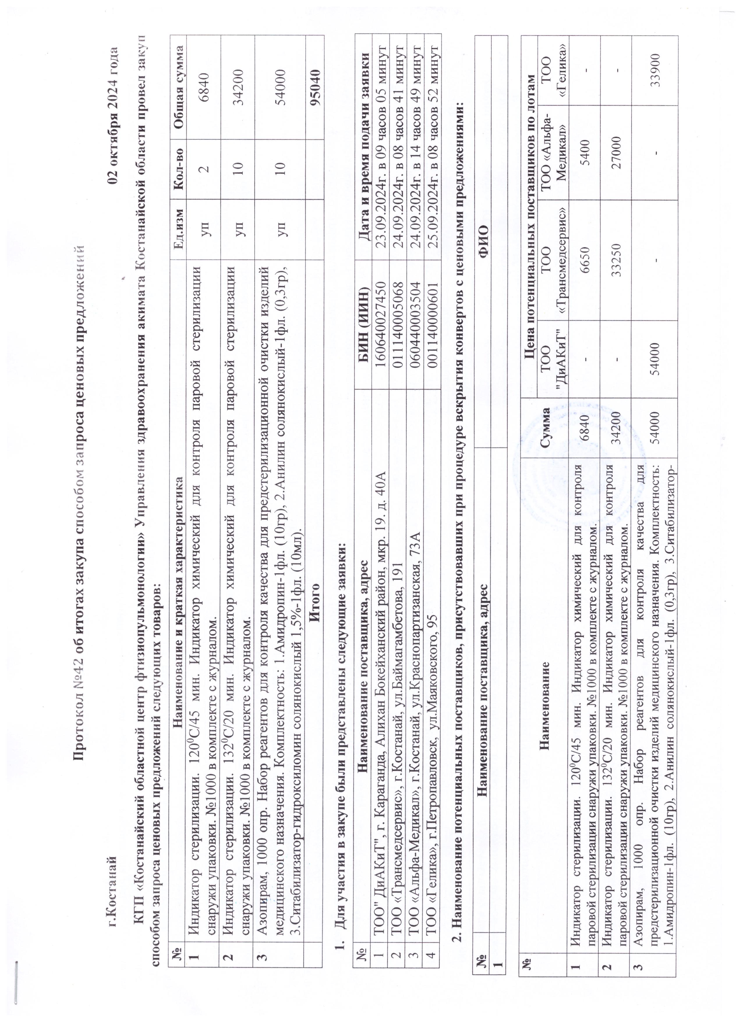 Протокол №42 об итогах закупа способом запроса ценовых предложений 1 лист